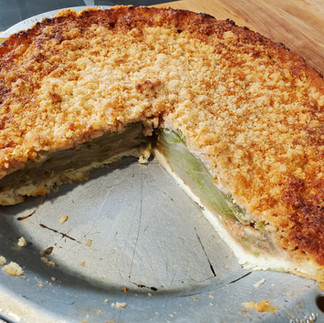 I started with thinking about the crust, I already had a coconut flour crust recipe but when I thought about recipes I have developed since that one, I realized my puff pastry recipe was very similar to a pie dough recipe. So I tried it and it came out nicely tender and flaky without having to fold it a bunch of times cause we don't need a big puff to the crust ( https://youtu.be/j74kT6jCPkk )!! It has a few more special ingredients so if you don't have them on hand, try my coconut flour crust recipe, it will still be good but is a little higher in carbs. ( https://youtu.be/Fmy5s5AkM-4 )